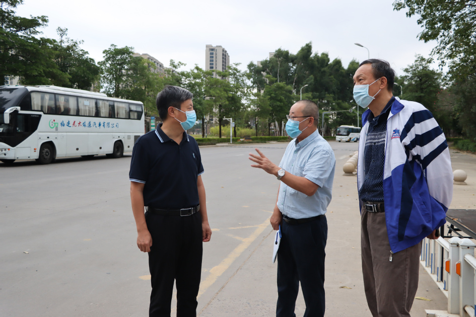 清晨,校领导一行来到旗山校区集中送考出发点,亲切看望考生和志愿者们,叮嘱考生们要注意个人防护、严守考试规定、全力以赴应试,并预祝他们考试顺利、争取好成绩。校领导们充分肯定了志愿者们主动担当的奉献精神和冲锋在前的表率作用,希望广大师生能够团结协作、身体力行、齐心战疫,一起守护校园安宁,共同打赢疫情阻击战、歼灭战。