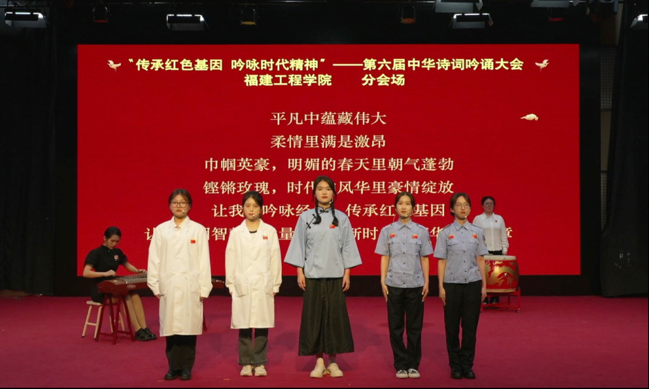 11月12日,由中华诗教学会、中国韵文学会、上海市艺术教育委员会指导,教育部中华优秀传统文化传承基地(上海大学中华古诗文吟诵和创作基地)等多家单位联合举办的“传承红色基因,吟咏时代精神”——第六届中华诗词吟诵大会决赛在上海大学图书报告厅举行。由我校人文学院苏琴琴副教授指导,刘颖等8名同学共同完成的吟诵作品《颂巾帼英雄,展中国力量》从一百多个参赛作品中脱颖而出,并荣获大赛三等奖。(人文学院供稿)