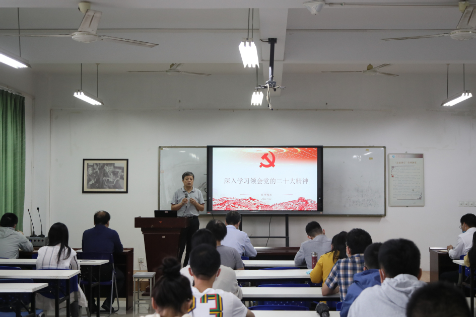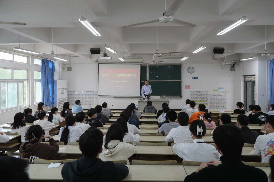 11月17日下午,副校长刘国买深入应用技术学院宣讲党的二十大精神。应用技术学院党政领导干部、师生党员共70余人聆听宣传报告。
