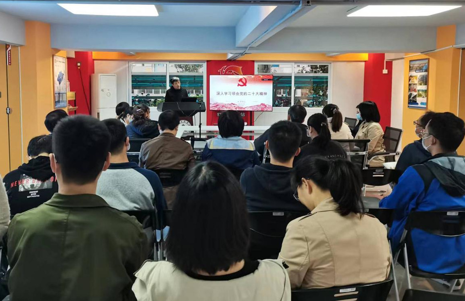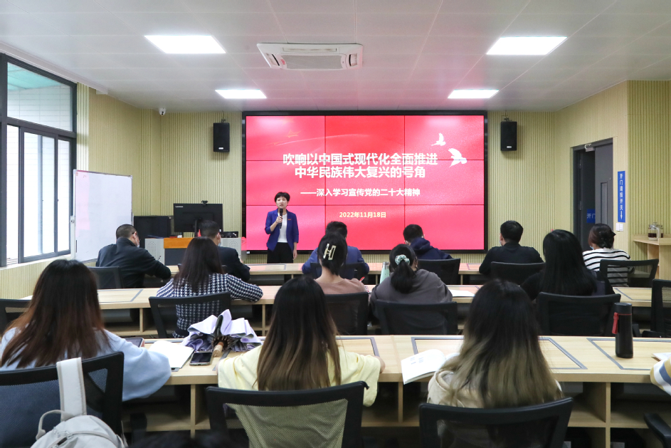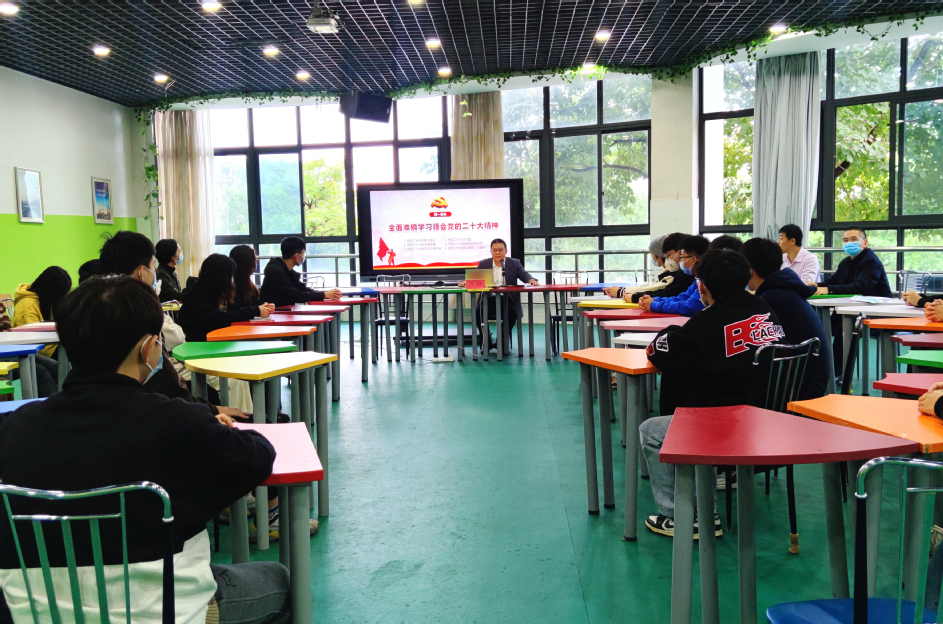 徐子青结合当前学生工作实际,以“学思践悟党的二十大精神,奋力谱写学生工作新篇章”为主题,围绕充分认识学习宣传贯彻党的二十大精神的重大意义、全面把握党的二十大主题和主要成果、深刻理解中国式现代化的科学内涵、如何学习把握落实党的二十大精神等四个方面,对党的二十大精神进行了宣讲。