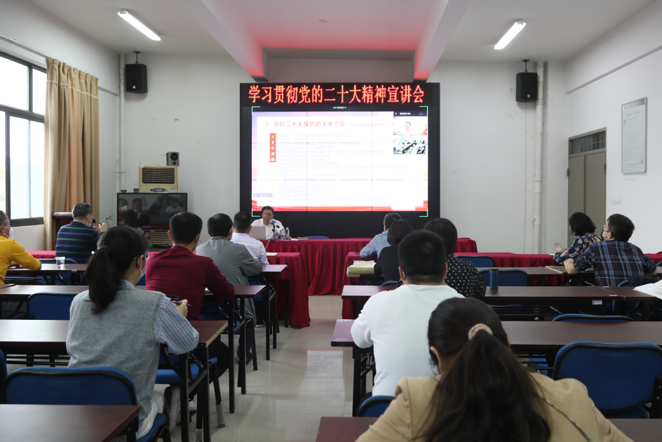 校党委副书记詹松青为我校党外代表人士宣讲中共二十大精神