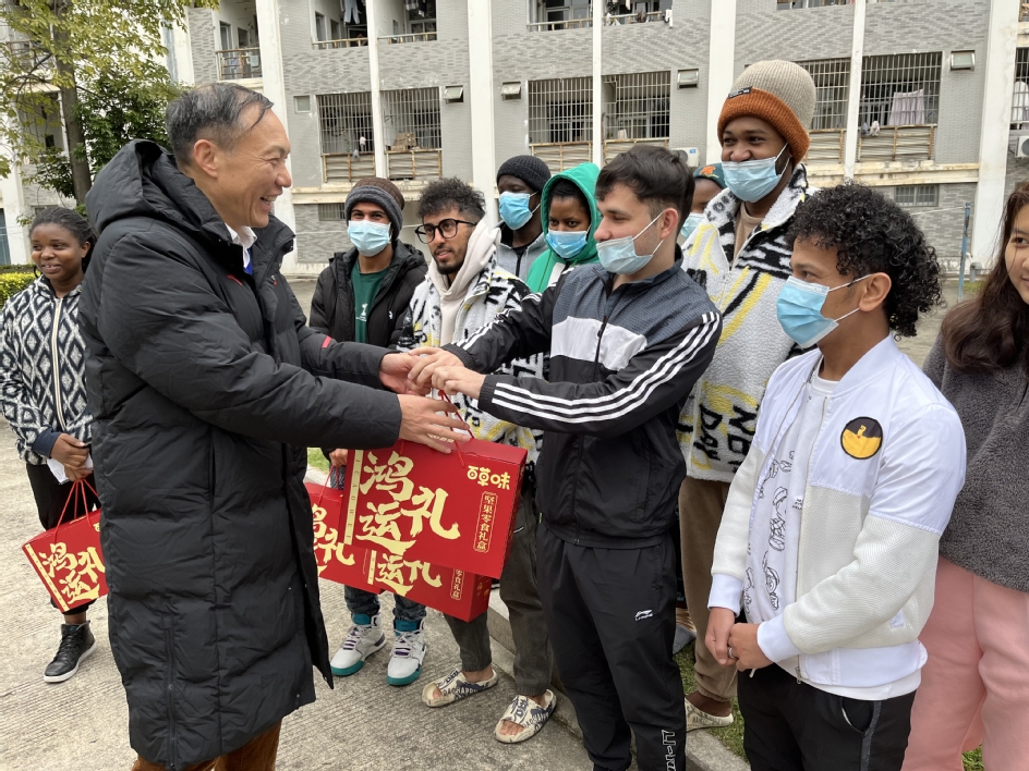 金虎辞旧岁,玉兔迎新年。1月21日,农历除夕,副校长刘国买带领办公室、武保部、后勤处、国际处、校工会等部门负责人,走访慰问节日期间坚守工作岗位的值班人员,看望在校过年的留学生。