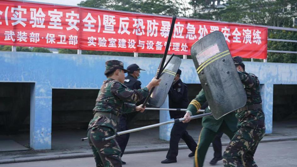 2月22日下午,学校在旗山校区组织开展实验室消防安全讲座、应急疏散演练、消防灭火及反恐防暴应急处置安全演练,武保部、设备处、材料学院等单位负责人以及新进教师、实验技术人员、安保人员、食堂员工和学生代表等470余人参加演练。