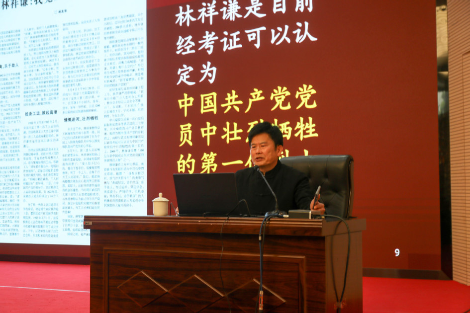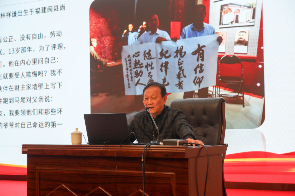 在活动现场,全体与会人员集体观看了视频《人民不会忘记——林祥谦:为革命信仰 头可断血可流》,共同缅怀林祥谦烈士的英雄事迹。随后,林耀武、林友华、林秋美分别以《林祥谦的“四有”品格与“三有”家训》《中共最早英烈林祥谦》《英雄背后有英雄》为题作专题宣讲,讲述了林祥谦烈士的血性品格、家风家训以及林祥谦烈士一门忠烈可歌可泣的英雄事迹,再现中国共产党第一位烈士的光荣一生。