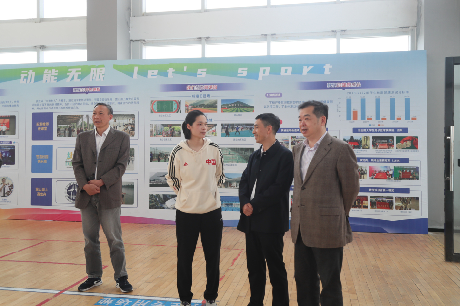 座谈会上,叶得盛一行观看了学校宣传片。吴仁华详细介绍了学校“三大目标”的推进情况以及体育工作所取得的成绩,并指出学校将进一步深化体教融合,推进体育服务学生、服务社会等方面的工作。叶得盛对我校体育工作给予了高度评价,希望双方围绕推进体教融合、加强课程思政建设、实现场地和器材共享、发挥优秀人才优势、弘扬女排精神等领域进一步深化合作,共同助力实现“体育育人”与“体育强国”目标。