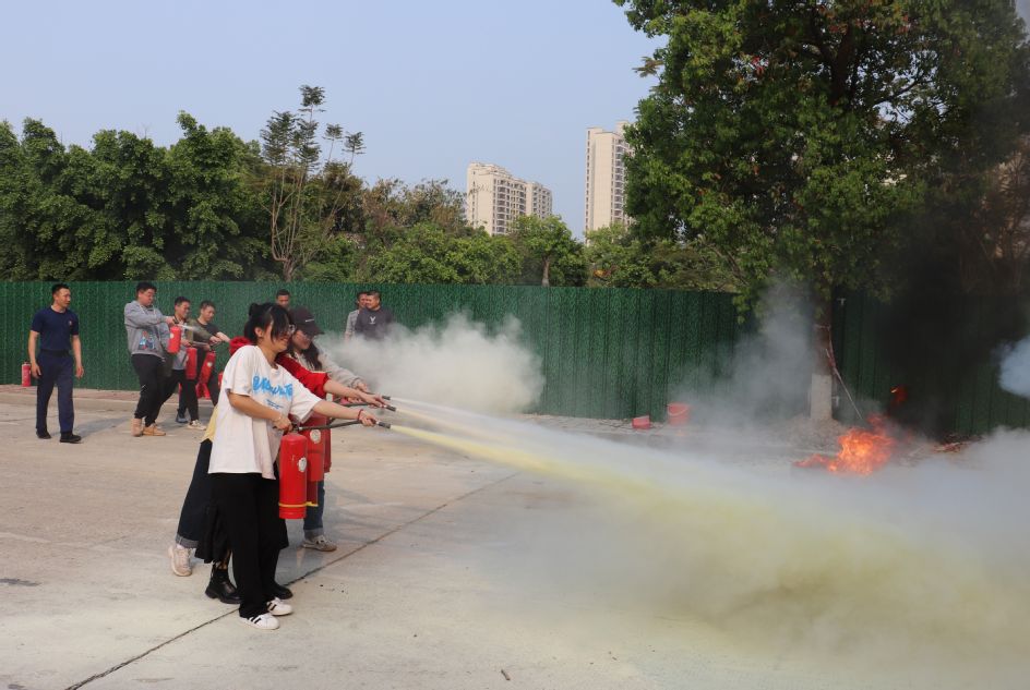期间,学校武保部负责人结合近年来福州大学城区域内发生的各类火灾火情案例开展了消防安全警示教育,针对研究生课题和科研实验多、消防安全隐患增大的特点,教育广大研究生要强化安全意识、学习操作规程、分析实验风险、熟练应急预案,确保遇有火情等突发问题能够沉着应对、妥善处置。大学城上街消防站人员针对校园消防安全管理工作特点,详细讲解了不同燃烧性质的初起火情的扑救方法和安全注意事项,分别演示了使用干粉灭火器、二氧化碳灭火器、灭火毯和灭火砂进行消防灭火的规范操作流程。参训师生先后使用不同消防器材进行了扑灭初起火灾现场训练。