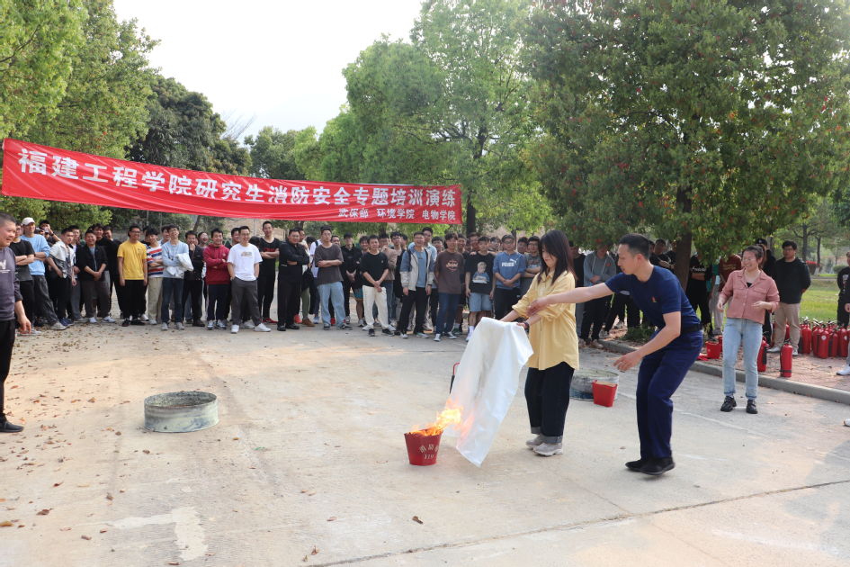 为进一步深入贯彻省消安委关于加强“全生命周期”消防安全宣传教育培训工作的通知精神,扎实推进安全大检查工作落实,3月22日下午,学校在旗山校区组织开展研究生消防安全专题培训演练,福州大学城上街消防站人员为此次演练作专门技术指导,环境学院、电气学院有关负责人以及2021级、2022级研究生共200余人参加培训演练。