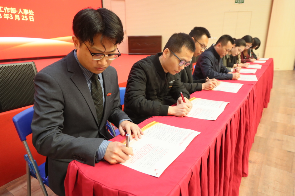 在开班仪式上,体育教研部副主任林莉副教授代表新进教师发言。校领导及相关部门负责人为新进教师代表佩戴了校徽。新进教师们在现场签订了师德师风承诺书。