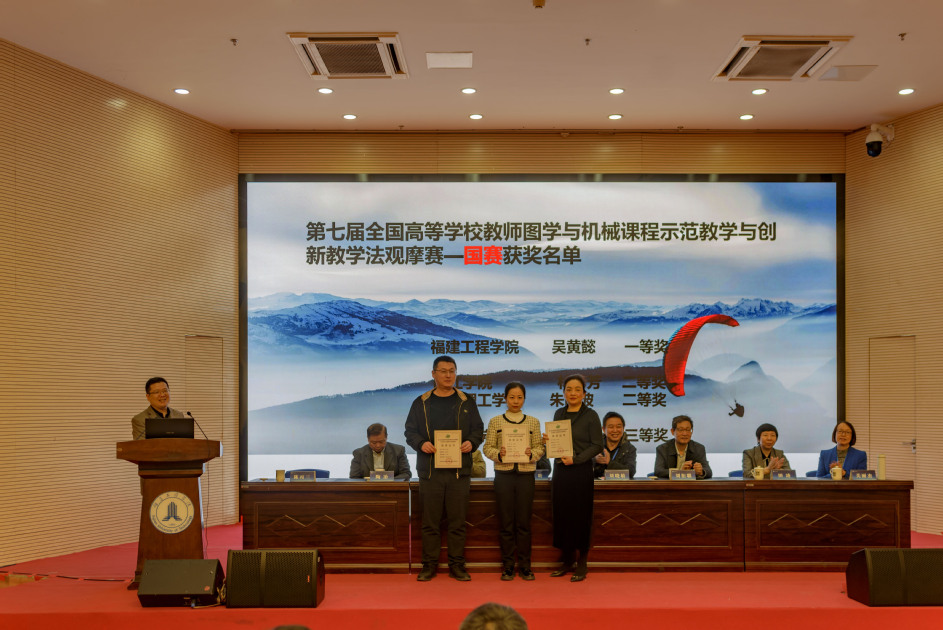 在颁奖会上,颁奖嘉宾向我校机械与汽车工程学院吴黄懿颁发了全国图学教师能力大赛一等奖证书,吴黄懿分享了全国高校教师能力大赛的参赛心得。同时,机械与汽车工程学院陈栩指导的多支参赛队伍分别荣获全国大学生先进成图大赛二等奖、三等奖。