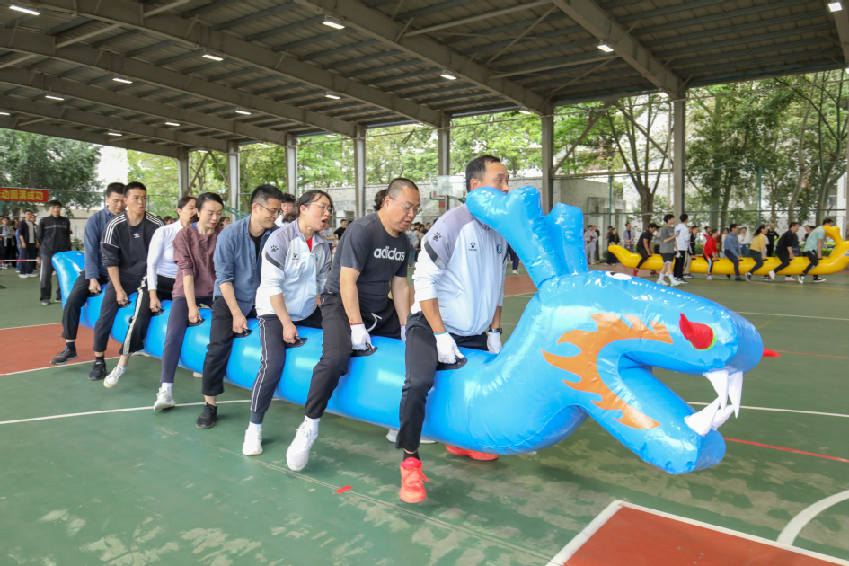 本次趣味运动会共设“推球过杆接力”“车轮滚滚”“旱地龙舟”“欢乐同心鼓”四个项目,每一个比赛项目既是智慧和体力的角逐,更是团队协作的比拼,参赛教职工以最灿烂的笑容、最洋溢的热情、最昂扬的姿态迎接挑战。
