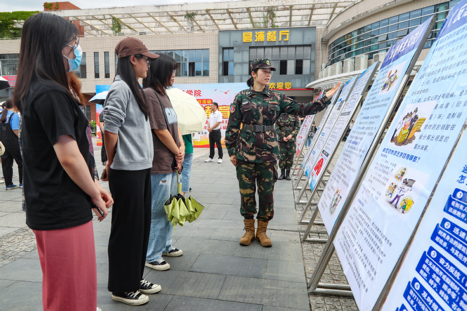 在宣传活动现场,学校通过展板形式集中展示《中华人民共和国国家安全法》《中华人民共和国反恐怖主义法》《中华人民共和国反有组织犯罪法》等法律法规,开展了反邪教、生物安全、保密安全、交通安全、消防安全等宣传教育。学生宣讲志愿者们向师生发放了宣传资料,并结合典型案例讲解了各类危害国家安全行为,普及各类安全防范和社交媒体保密管理等相关知识,引导广大师生增强国家安全意识和素养,提升维护国家安全能力。