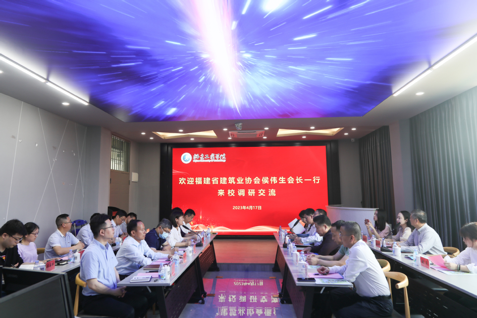 4月17日下午,福建省建筑业协会会长侯伟生一行来校交流。副校长吴琛,土木工程学院、建筑与城乡规划学院、生态环境与城市建设学院、法学院、管理学院、学工部、教务处、科研处等相关单位负责人及教师代表参加座谈交流和战略合作签约仪式。