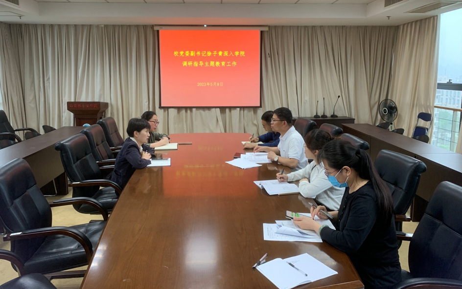 5月8日上午,校党委副书记徐子青到马克思主义学院调研指导主题教育工作。马克思主义学院党政领导班子成员、院长助理等相关人员参加会议。