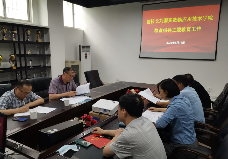 5月15日下午,副校长刘国买深入应用技术学院调研指导主题教育工作。发展规划办公室负责人,应用技术学院党政班子成员、党委委员及党委组织员参加会议。