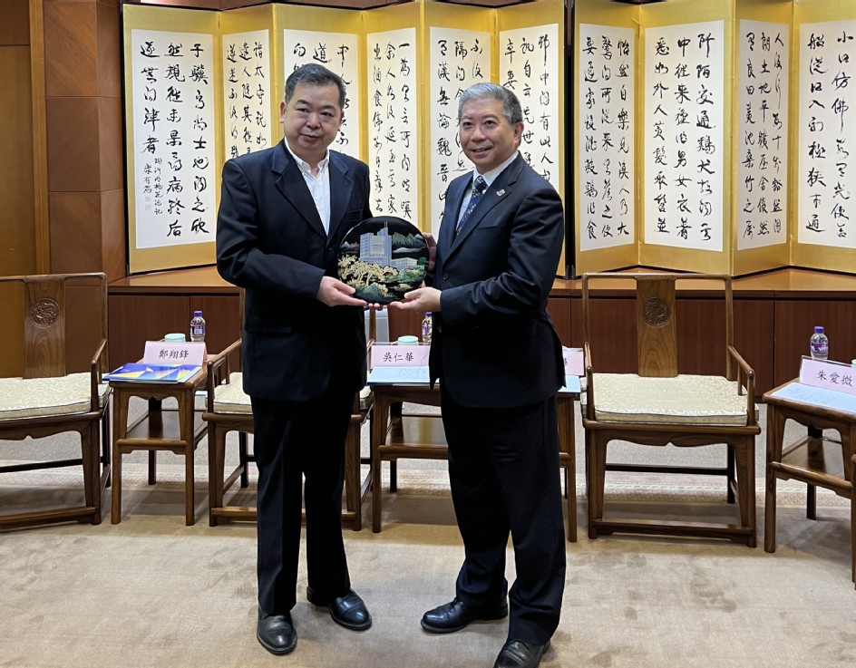 在澳门科技大学,吴仁华与澳门科技大学副校长邝应华进行了深入交流。双方分别介绍了学校发展情况、办学特色优势,并就加强理工科、人文社科等领域的交流合作达成共识。双方一致表示,将进一步推动人才培养、科研合作、师资交流、短期学习项目等方面的具体合作,共同服务于闽澳两地交流合作。期间,吴仁华一行人参观了澳门科技大学的校史与成果展厅。