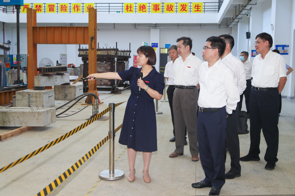专题宣讲前,林文斌实地参观了土木工程综合实践中心,听取了相关工作汇报。(办公室、宣传部供稿)