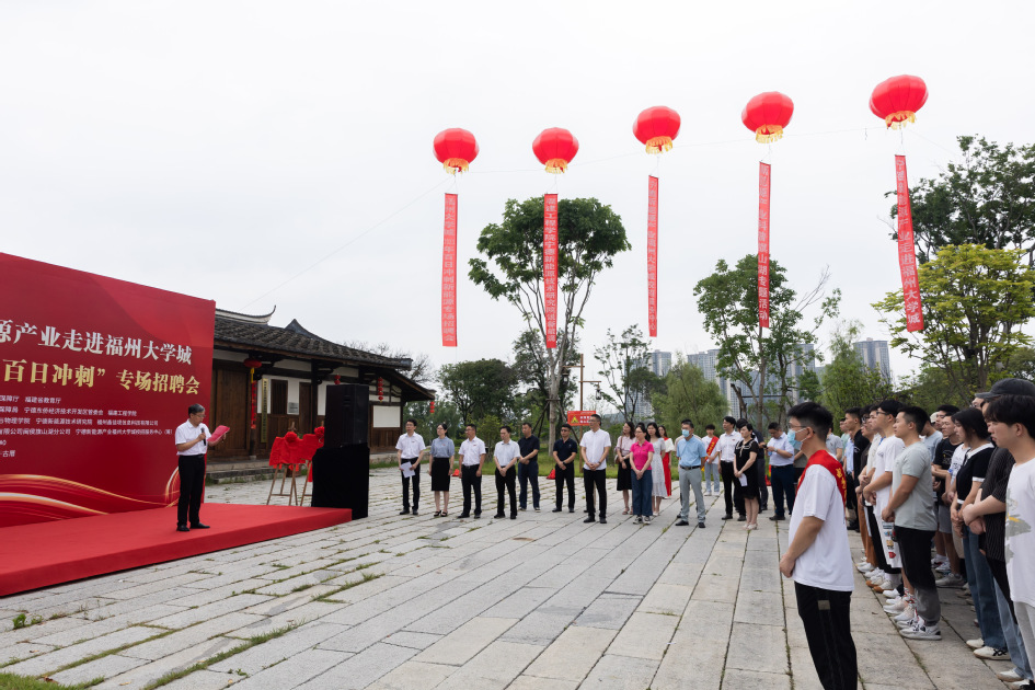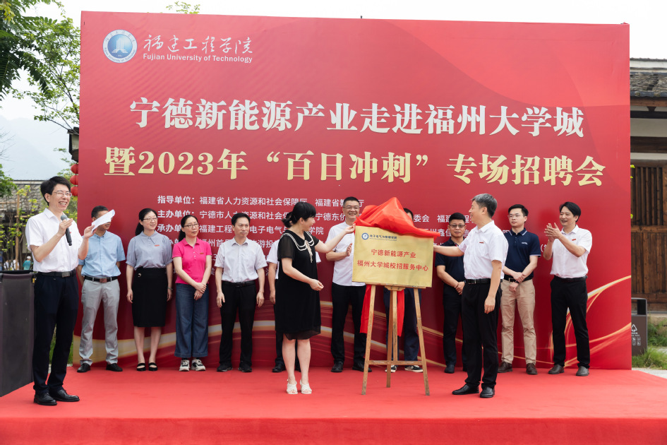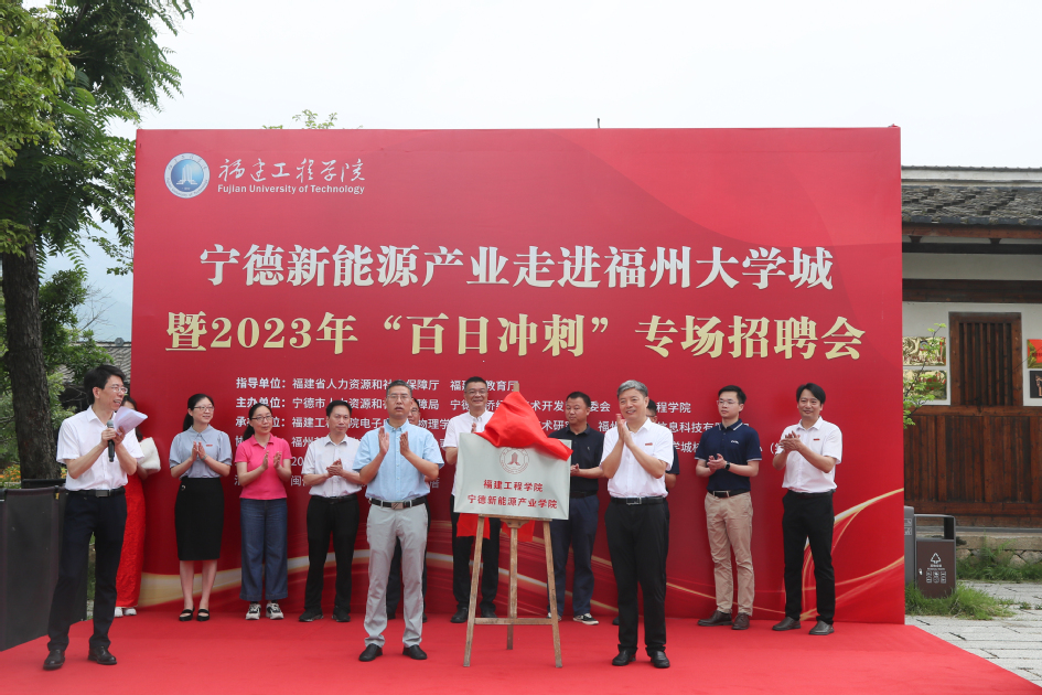 为贯彻落实党中央、国务院和省委、省政府关于做好经济工作和高校毕业生就业工作的部署安排,促进实体经济发展和高校毕业生高质量充分就业,6月3日上午,由福建省人力资源和社会保障厅、福建省教育厅指导,福建工程学院、宁德市人力资源和社会保障局、东侨经济技术开发区管理委员会联合主办的“宁德新能源产业走进福州大学城暨2023年百日冲刺专场招聘会”在旗山湖70号古厝举行。福建工程学院校长童昕,省教育厅学生处处长李俊玮、二级调研员游金茂,学校宣传部、学工部、教务处、电子电气与物理学院等单位负责人,宁德市人社局、东侨开发区人社局代表以及10余家新能源产业企业参加活动。