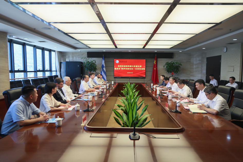 7月7日下午,希腊共和国西希腊大区副主席福基安·柴伊米斯、帕特雷大学副校长瓦西里奥斯·瓦西雷亚蒂斯等一行4人来校交流访问。校党委书记吴仁华、校长童昕会见了来宾,对福基安·柴伊米斯一行的到访表示热烈欢迎。省外办党组成员、省对外友协专职副会长罗冠升,省外办欧非处处长蔡文质等陪同访问。国际交流处、土木工程学院、计算机科学与数学学院有关负责人参加交流。