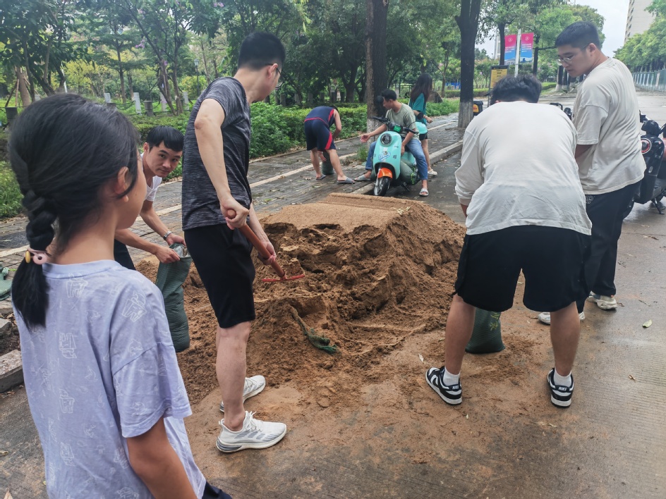 我校学子参与当地抗台防汛一线工作
