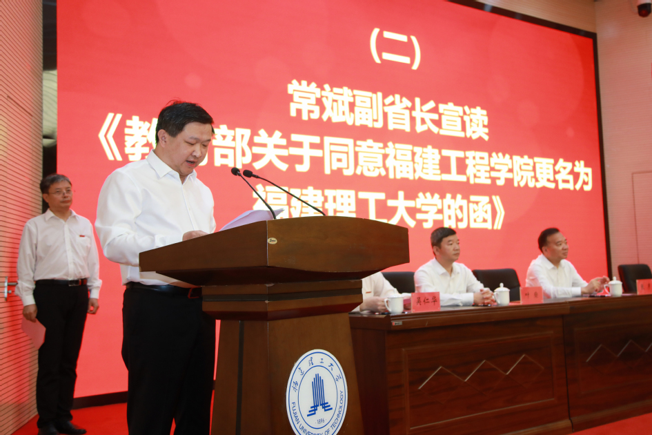8月30日,理工科大学高质量发展研讨会暨福建理工大学揭牌仪式在旗山校区举行。省委常委、宣传部部长张彦出席并代表省委省政府对学校办学发展提出希望,副省长常斌出席并宣读《教育部关于同意福建工程学院更名为福建理工大学的函》。