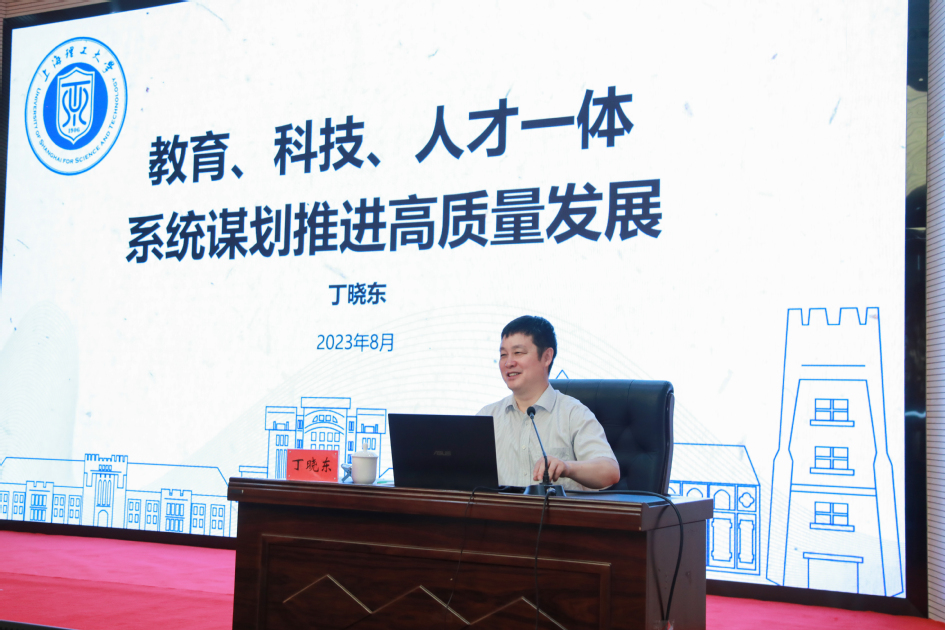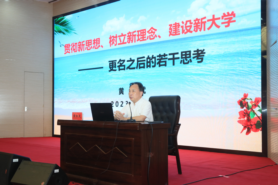 黄红武以《贯彻新思想、树立新理念、建设新大学——更名之后的若干思考》为题,全面分析了福建理工大学所处的方位,阐释了大学与学院的区别,厘清了学科建设与专业建设的概念,从重构学科学术体系、调整理顺院系机构等五个方面,为福建理工大学建设新大学提出了发展建议。丁晓东以《教育、科技、人才一体系统谋划推进高质量发展》为题,讲解了系统观念的内涵、指出了推进“教育、科技、人才一体化发展”的重要举措,并详细介绍了上海理工大学等高校的发展思路,为与会人员提供了案例解剖式的生动讲授。吴仁华以《贯彻新思想树立新理念建设新大学》为题,概述了教育强国的内涵、目的和实现路径,系统介绍了学科建设和教育数字化的重要性和推进思路,结合学科专业交叉融合、产教融合、文化建设等方面的具体案例,进一步解析了高水平理工科大学建设的重点内容。