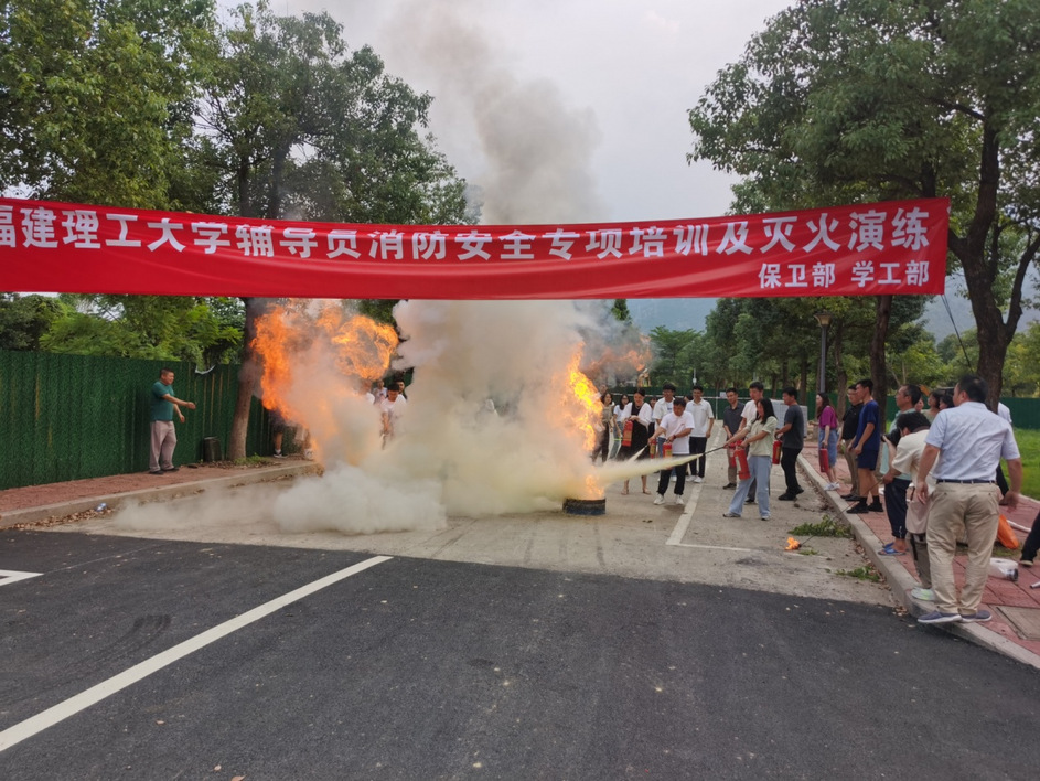 闽侯消防救援大队上街消防救援站消防介绍了不同燃烧性质的初起火情以及扑救方法、安全注意事项,分别演示了使用干粉灭火器、二氧化碳灭火器、灭火毯和消防水带进行消防灭火的规范操作流程。全体辅导员逐一参加了各种消防器材的灭火演练。