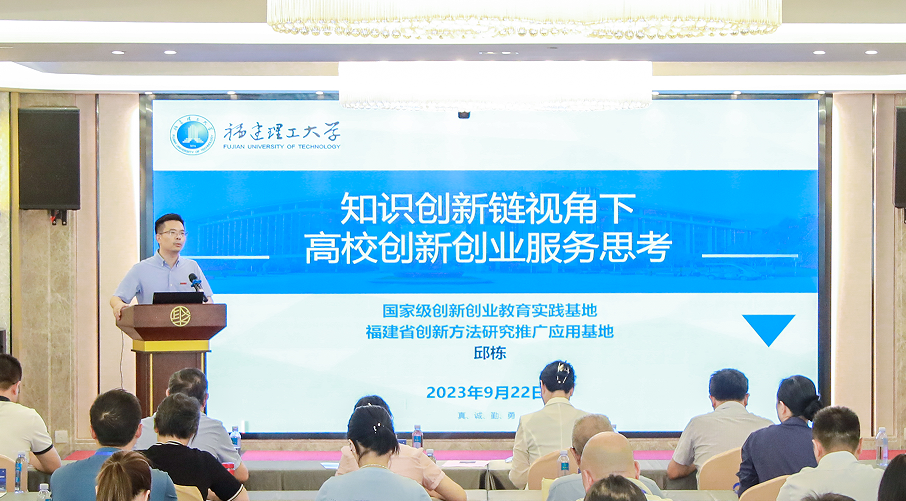 颁奖仪式结束后,南京理工大学图书馆原馆长、博士生导师张小兵以及我校管理学院副院长、福建省创新方法研究推广应用基地负责人邱栋分别作了主题为《图书馆如何助力创新创业》《知识创新链视角下的高校创新创业服务思考》的专题报告。