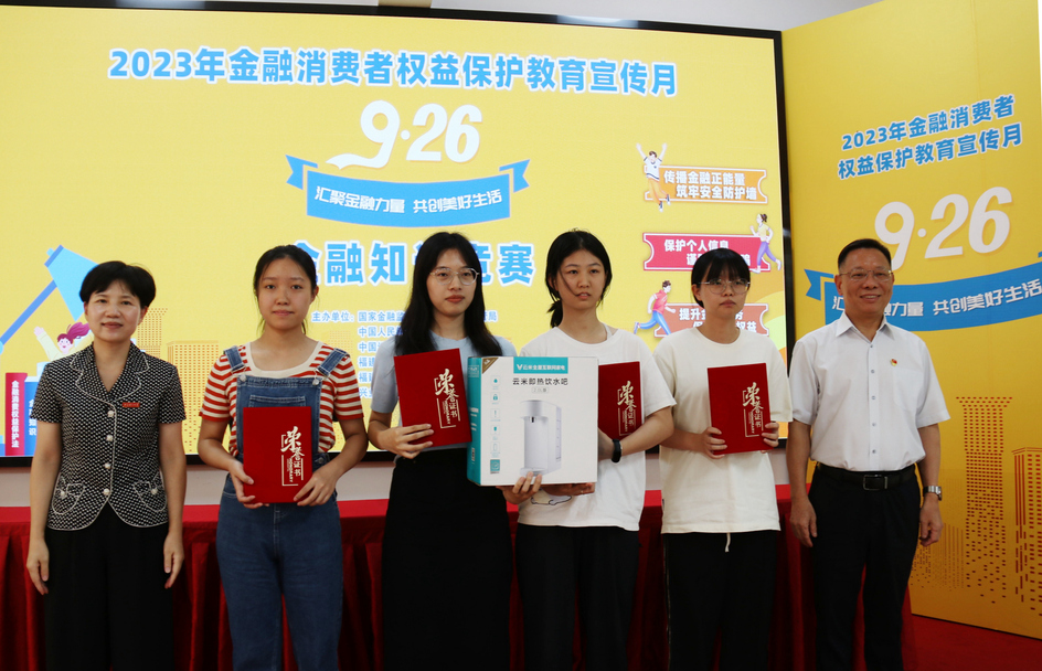9月26日上午,“汇聚金融力量 共创美好生活”金融知识进校园活动暨“大学生金融安全教育中心”揭牌仪式在我校旗山校区举行。校党委副书记徐子青、国家金融监督管理总局福建监管局二级巡视员王建魁、兴业消费金融股份公司副总裁李文捷出席活动,福建省学生资助管理中心、国家金融监督管理总局福建监管局非银处、兴业消费金融股份公司、校学生工作部、校团委等相关单位负责人及师生代表参加活动。