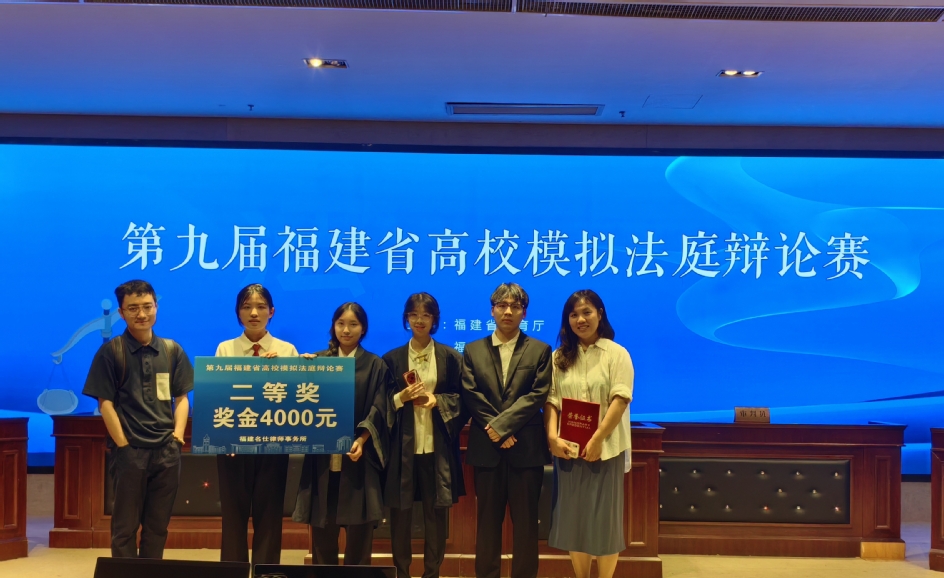 9月23日,由福建省教育厅主办的第九届福建省高校模拟法庭辩论赛在福建师范大学开赛。经过2天的激烈角逐,由我校法学专业黄俊铭、林步芳、上官雨桐、张明渼组成的代表队在董思远、翁梦佳两位老师的指导下荣获二等奖,充分展现我校学子昂扬向上的精神风貌和良好的法律素养。