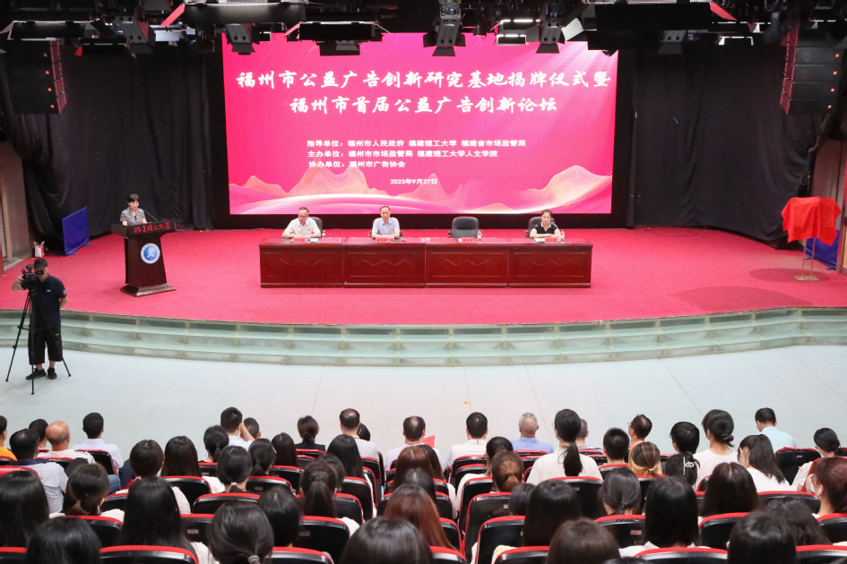 9月27日,福州市公益广告创新研究基地揭牌仪式在我校旗山校区南区演播厅举行。福建省市场监管局党组成员、总工程师张元榕,校党委副书记徐子青,福州市市场监管局局长陈宗胜,福州市政府办公厅三级调研员赵爱萍等出席揭牌仪式。