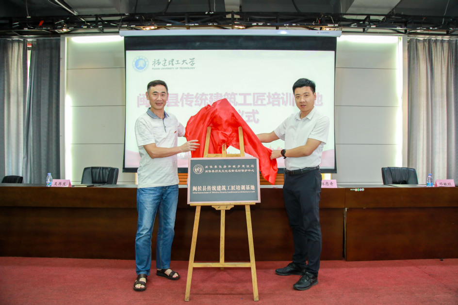 在与会人员的见证下,还举行了闽侯县传统建筑工匠培训基地揭牌仪式。