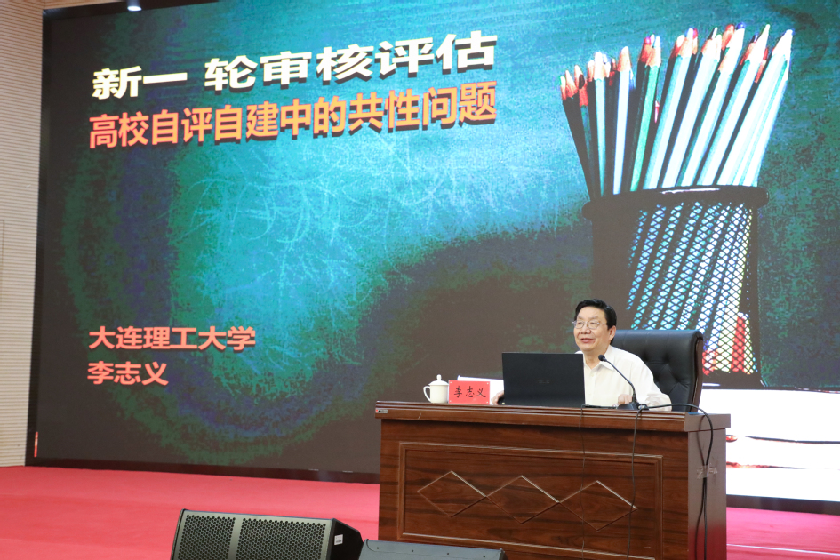 李志义教授以《新一轮审核评估高校自评自建中的共性问题》为主题,结合习近平总书记关于教育的重要论述,深入解读了关于高等教育教学工作的有关文件精神,并针对高校新一轮审核评估的实践工作,分析了参评高校在自评自建过程中因未能完全理解审核评估的核心要义导致自评自建无从下手、未能充分重视审核评估的三个重点导致审核评估缺乏目标、未能正确把握审核评估的四个特点导致评估过程敷衍了事等现象及存在的问题。他重点结合现代国际高等教育的最新理念,对高校内部质量保障体系“是什么”“为何建”“如何建”作了全面且权威的深度解读。