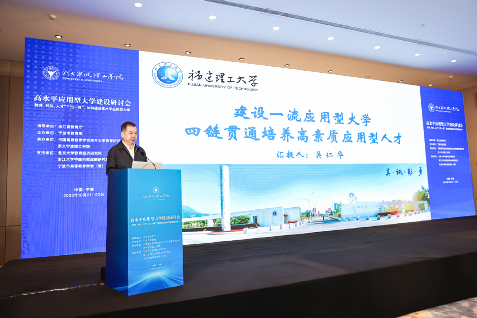 10月21日至22日,校党委书记吴仁华应邀出席高水平应用型大学建设研讨会并作题为《建设一流应用型大学 四链贯通培养高素质应用型人才》主题报告。