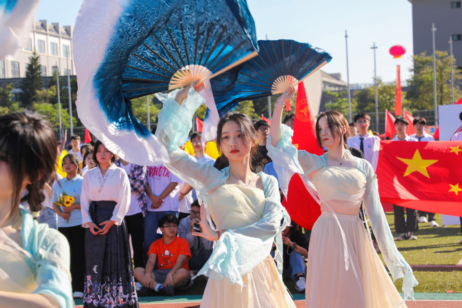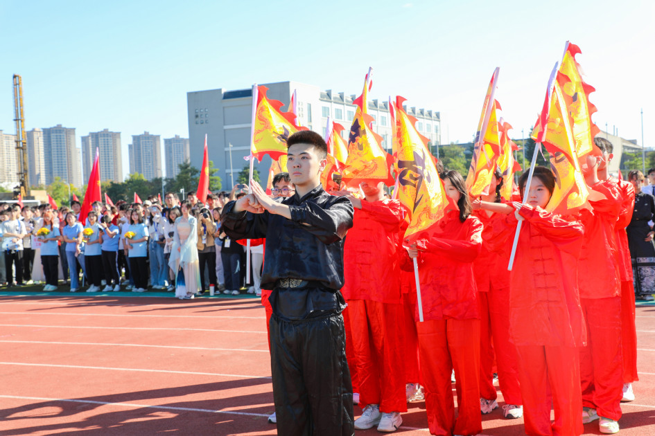 开幕式伊始,国旗护卫队、校旗护卫队、彩旗方阵队、鲜花队、各学院方阵队迈着矫健的步伐依次进场。各学院方阵队带来了精彩的表演,展现了学校丰富多彩的校园文化,演绎了健康向上的体育精神。(体育部供稿)