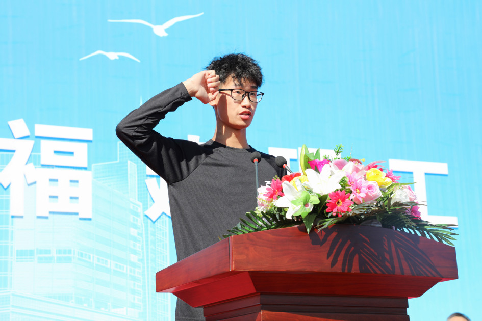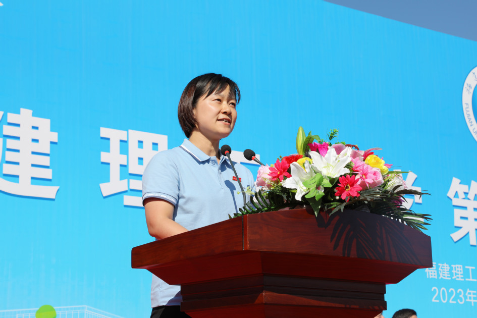 校长童昕宣布福建理工大学第一届田径运动会开幕。