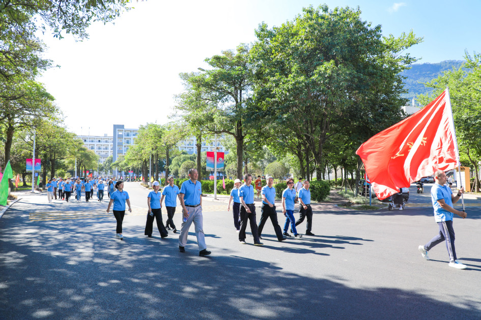11月1日上午,由校工会主办,党政办、体育部、宣传部、团委、武保部、后勤处协办的“健康迈步新征程 踔厉奋发新时代”教职工健步走活动在旗山校区举行,校领导、全体教职工参加本次活动。