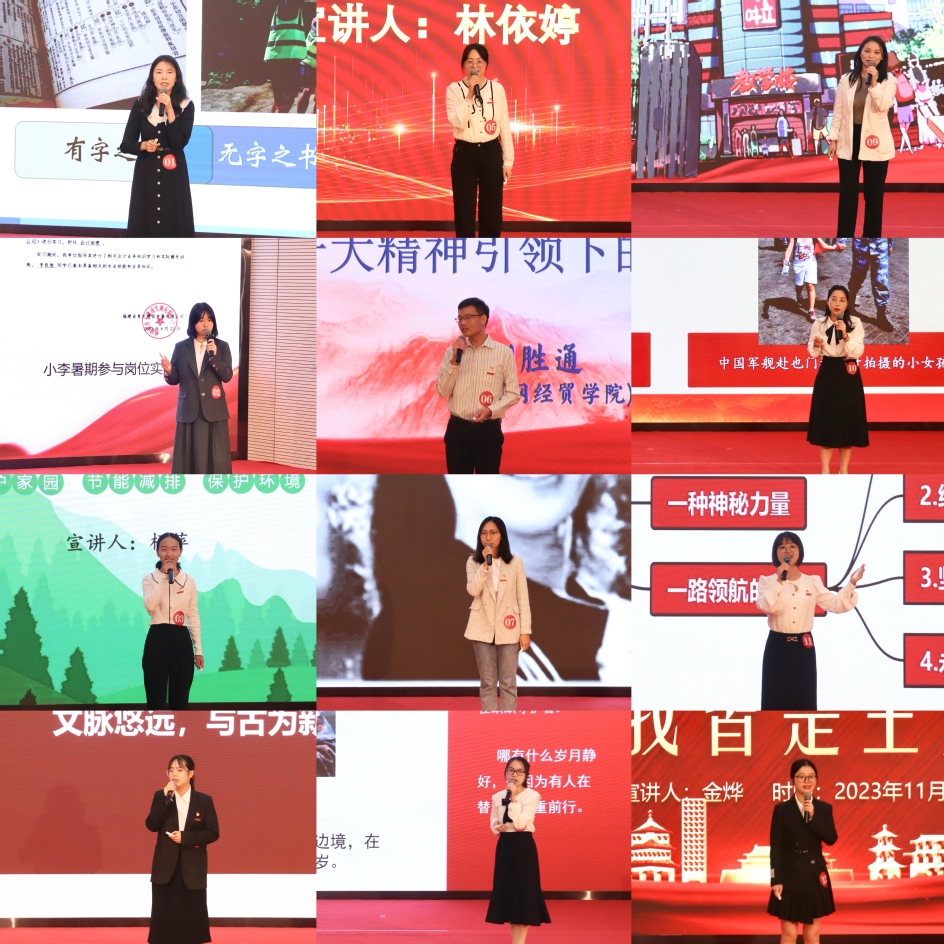 比赛采用理论宣讲方式进行,经应知应会测试择优选拔进入复赛的12位选手围绕习近平新时代中国特色社会主义思想和党的二十大精神,结合新形势下青年工作的重大理论和实践问题,紧扣思想政治教育工作内容,自选主题展开宣讲。比赛中,选手们的宣讲主题突出、立意深刻,灵活运用了当前社会热点、先进典型事迹、校园历史文化、学生身边的故事,通过讲政策、讲理论、讲案例的方式,呈现了一场内容丰富、富有温度、饱含力度的思想政治理论课,最终6位辅导员入围辅导员素质能力大赛决赛,并与其他3位辅导员共同成为首批学生社区攀讲团成员。