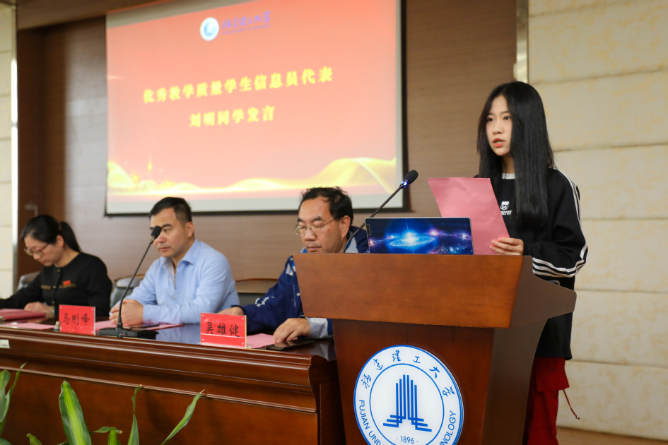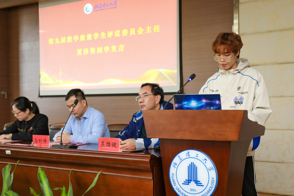 优秀教学质量学生信息员代表、第九届教学质量学生评议委员会主任委员分别作了发言。他们分享了参与学校教育教学质量保障工作的心得体会,号召同学们认真履职尽责,珍惜并充分利用好学校提供的平台,锻炼自己,增长才干,搭建好学校、教师与学生之间的沟通桥梁,为学校提高本科教学质量贡献力量。
