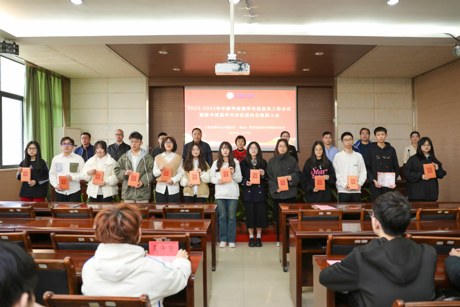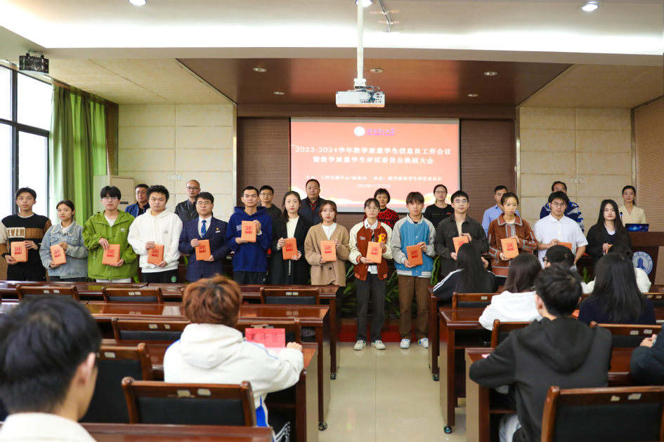会上,吴琛及相关部门负责人分别为24名优秀教学质量学生信息员、44名第九届教学质量学生评议委员会委员颁发了荣誉证书和聘书。