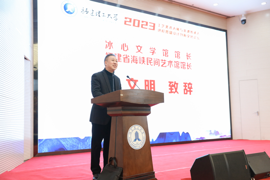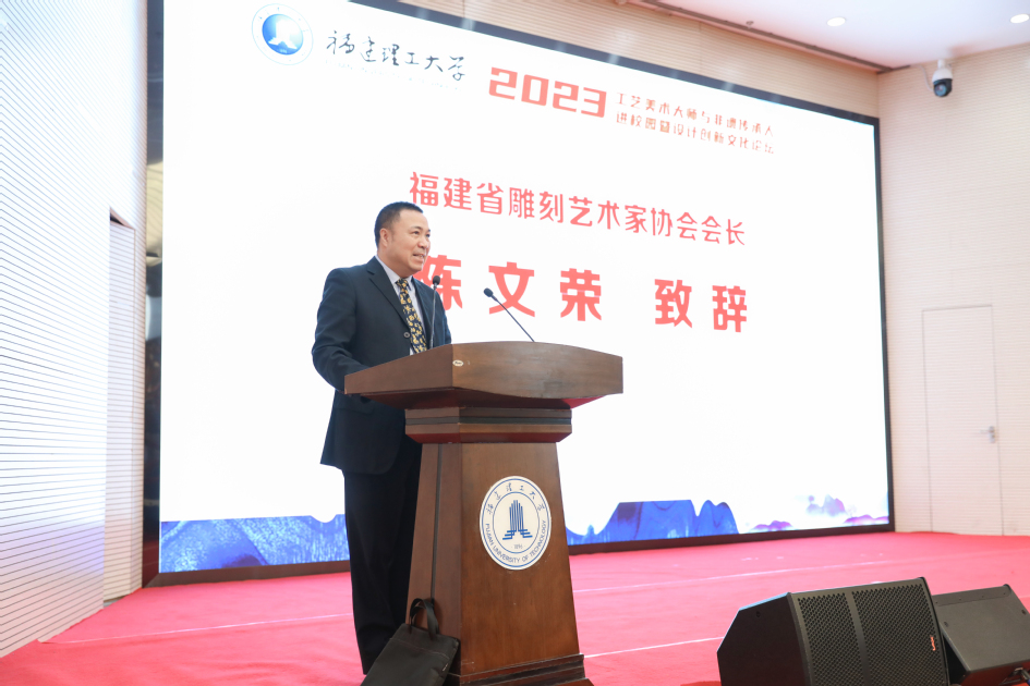 在论坛开幕式上,吴仁华对与会嘉宾、工艺美术大师和非遗传承人表示热烈欢迎,向长期关心、帮助和支持学校发展的省文化和旅游厅、省闽台文化交流中心、省美术家协会、省雕刻艺术家协会、省海峡民间艺术馆等表示衷心感谢。他指出,传统工艺美术产品以器载文、以艺载道,是锦绣中华的文化明珠和优秀传统文化的重要载体,高校要深入学习贯彻习近平文化思想,传承发展中华优秀传统文化。他表示,福建理工大学在坚持工科特色的同时,长期重视人文及艺术学科的建设和发展,注重将弘扬中华优秀传统文化和校史文化结合起来,有效推动林纾研究等地方文化研究成果转化为育人资源、融入学校立德树人实践。他希望,通过办好以工艺美术融合设计与创新为主题的学术论坛,进一步促进学校设计学学科的建设发展、构筑鲜明的学科特色,为社会培养更多高水平的设计类应用型人才。