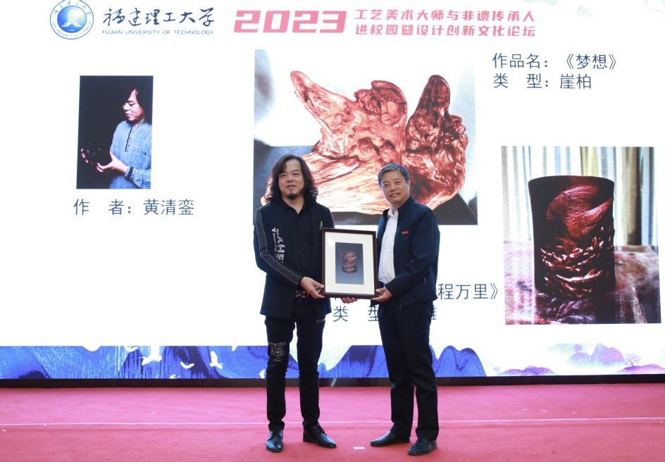 陈文荣指出,近年来一批又一批的工艺美术大师和非遗传承人走进福建理工大学校园,同广大师生一起设计和创造艺术梦想,共同推动了工艺美术和非遗的传承发展。他希望,工艺美术大师和非遗传承人们能够积极参与校园实践教学活动,将传统技艺与时代元素进行深度结合,让传统文化在校园中焕发新光彩。
