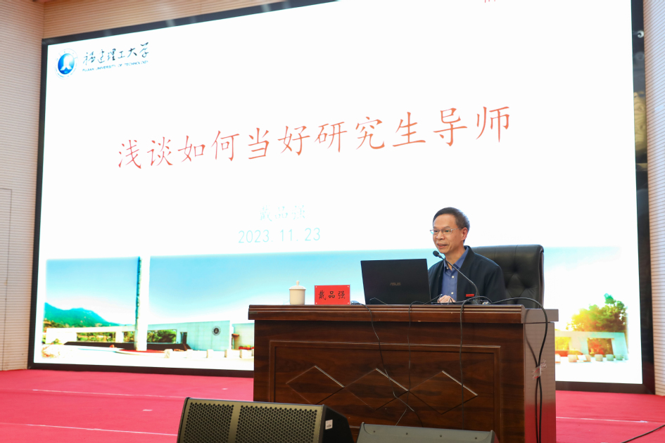 11月23日下午,学校在旗山校区学术报告厅举办“福工好导师”第五期培训,邀请材料科学与工程学院戴品强教授、交通运输学院廖律超教授作专题报告。各二级学院近200名研究生导师代表参加本次活动。活动由校长童昕主持。