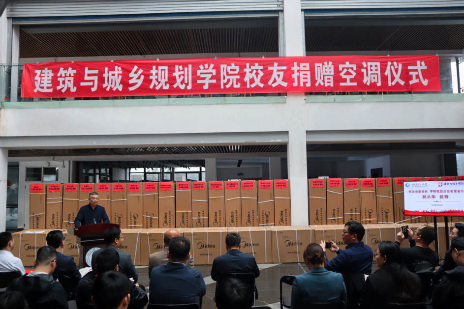 11月25日下午,建筑与城乡规划学院举行校友捐赠空调仪式。副校长何仕出席仪式,校友会会长郑旺材,校友会副会长、建筑与城乡规划学院校友分会名誉会长林从华,建筑学院领导班子,校友代表以及师生代表参加仪式。