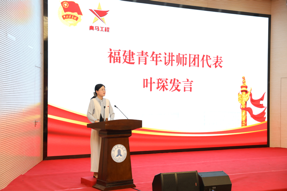 开班仪式上,上期“青马工程”培训班学员代表陈怡静、福建省青年讲师团成员叶琛分别作了交流发言。