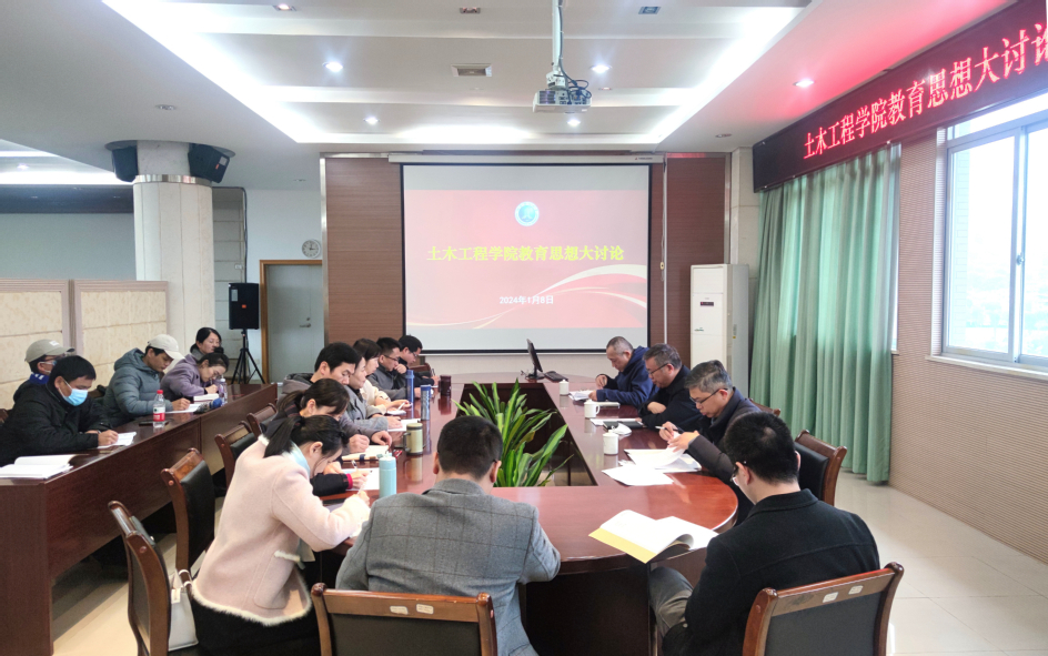 2024年1月8日下午,副校长韦建刚参加土木工程学院教育思想大讨论。土木工程学院党政班子成员、院长助理、科级干部、各专业负责人、教研室主任参加会议。