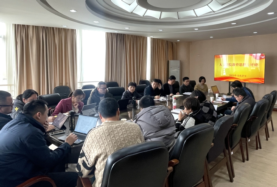 2023年12月27日上午,校党委副书记徐子青参加人文学院教育思想大讨论。人文学院党政领导班子成员、科级干部、专业负责人、教研室主任、党支部书记代表等参加会议。