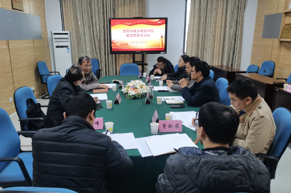 2023年12月27日下午,副校长刘国买带领发规办一行参加建筑与城乡规划学院教育思想大讨论。建筑与城乡规划学院党政班子成员、院长助理、各专业负责人等参加会议。