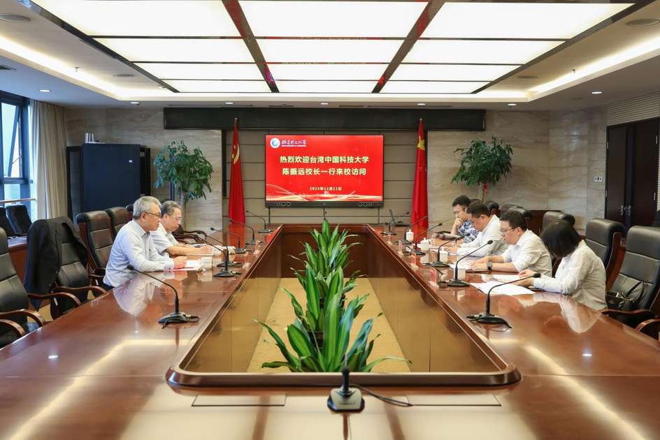 12月11日下午,台湾中国科技大学校长陈振远一行来校交流。副校长何仕亲切会见来宾并召开座谈交流。教务处、研究生处、港澳台办公室相关负责人参加交流。