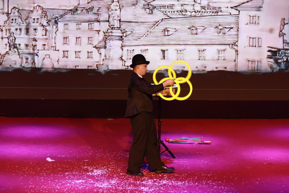 来自闽台两地的大学生轮番上阵,为师生奉上了精彩纷呈的魔术艺术盛宴,现场气氛热烈,台上台下频频互动。来自台湾的张纬、梁博翔表演魔术《超级幸运星》,第五届闽台两岸魔术大赛银奖、第七届南方六省魔术展演铜奖获得者——泉州华光学院的陈灿为大家带来了《红白幻像》,安徽职业技术学院的王健以夸张肢体语言表演的默剧《卓别林show》诙谐有趣幽默;福州职业技术学院的王铭海、高泓义用新颖的道具、独特的创意、干净利落的手法表演了《魔彩斑斓》《古彩戏法》;闽江学院的黄诗鎬带来的心灵魔术《狼人杀》,魔术师特有的角色魅力与策略深受青年学子欢迎;福建理工大学星宇魔术社的任霖广、苏凯锋和郑欣彤分别表演了《见证奇迹》《风起地》,星宇魔术社负责人吴文哲曾以最高分荣获第九届南方六省青年魔术展演近景组最佳效果奖,他带来的压轴节目《宿伞之魂》将演出推向了高潮。现场精彩表演赢得了观众们的阵阵掌声和欢呼声。