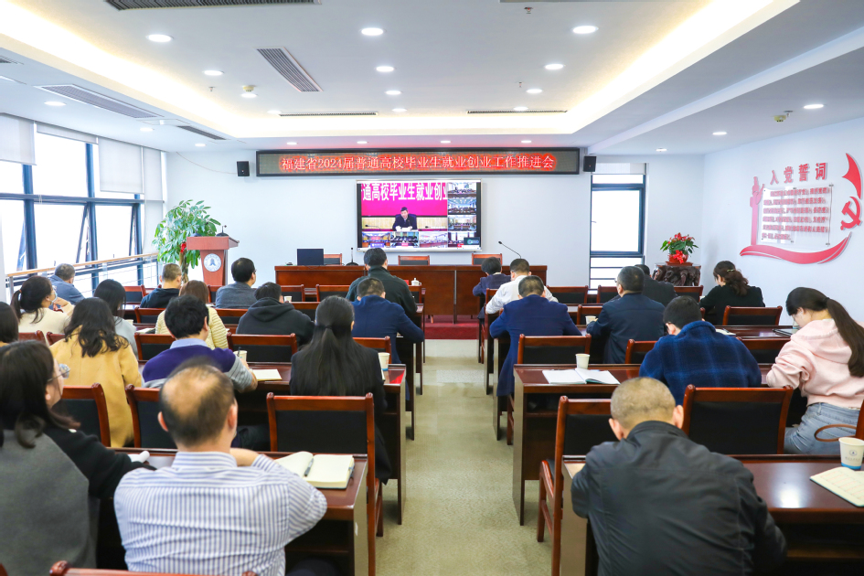 12月15日上午,省教育厅、省人社厅联合召开福建省2024届普通高校毕业生就业创业工作推进会,教育厅党组书记、厅长叶燊,人力资源社会保障厅党组成员、副厅长陈国銮出席会议并讲话,教育厅党组成员、副厅长李绚主持会议。学校在旗山校区行政楼第二会议室设分会场,校党委副书记徐子青,学生工作部负责人,二级学院党委书记,全体2024届毕业班辅导员以及就业创业中心有关人员集中参会。